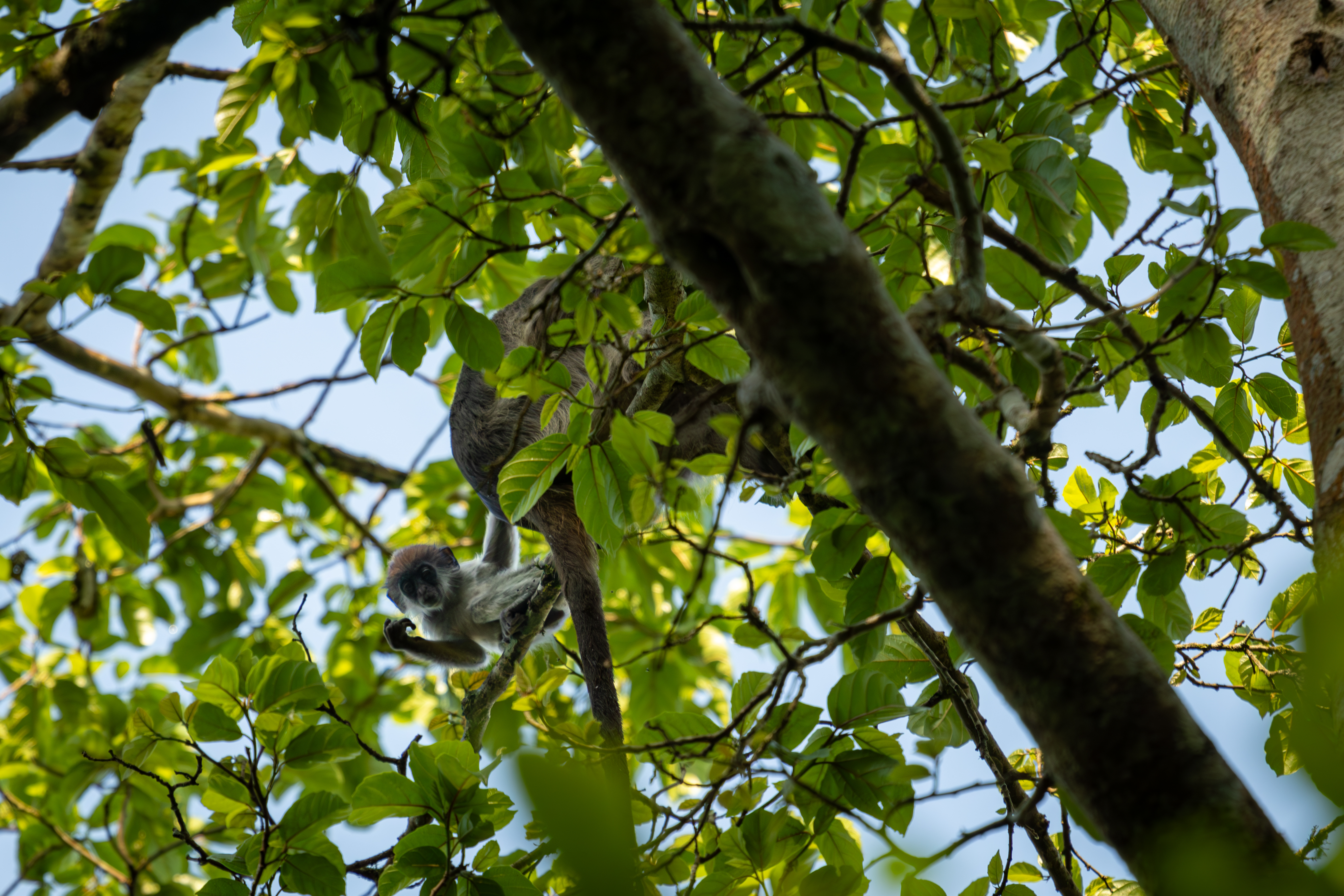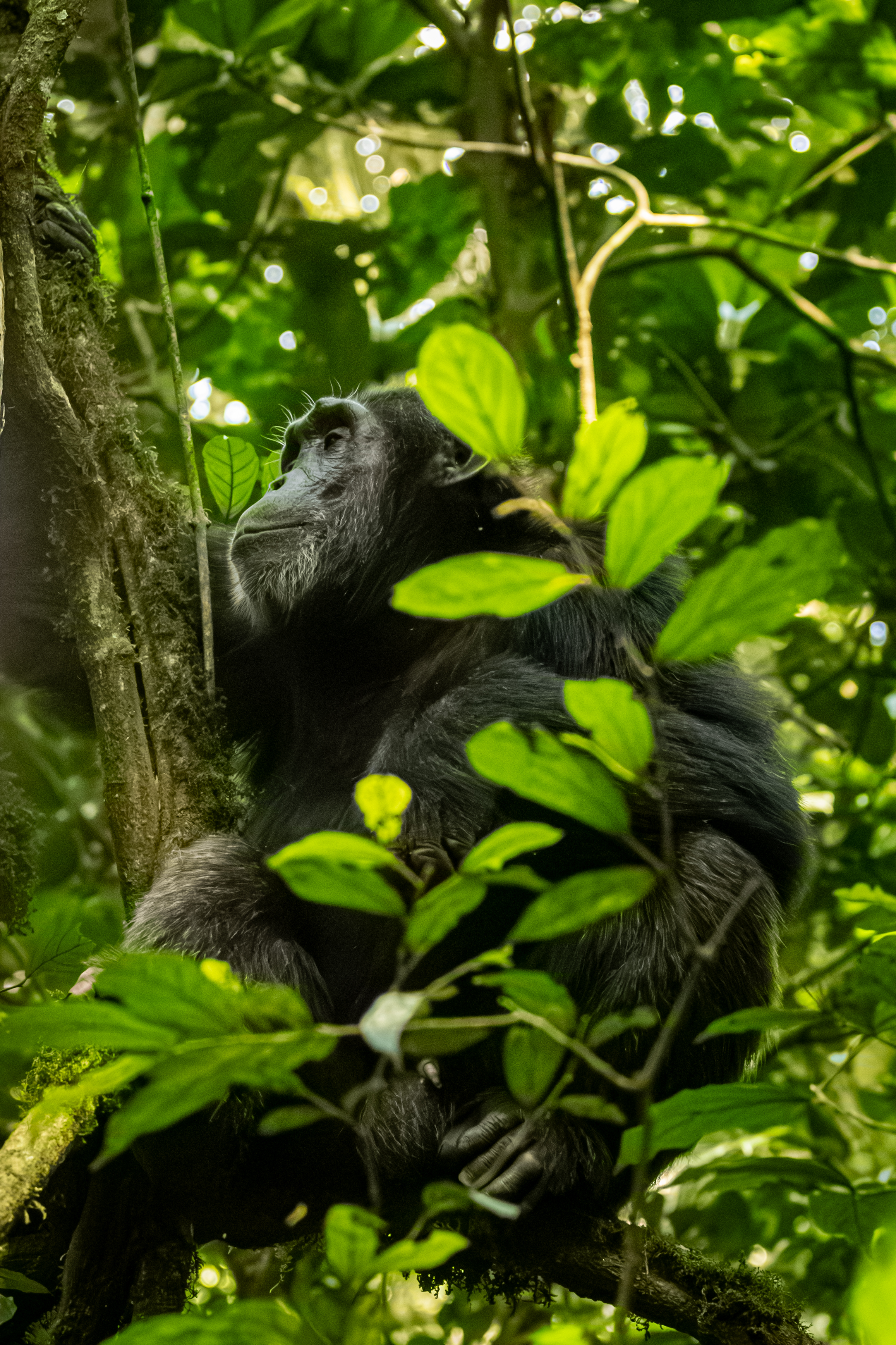 In the forest, we spent most of our time trailing one chimpanzee, named Mr. Black, as he searched for his friend. When he finally found him, Mr. Black began breaking branches and making a lot of noise. According to our guide, this behavior is called “displaying.” It is a way for him to assert dominance. Or, as in this case, it can express frustration at being left alone.