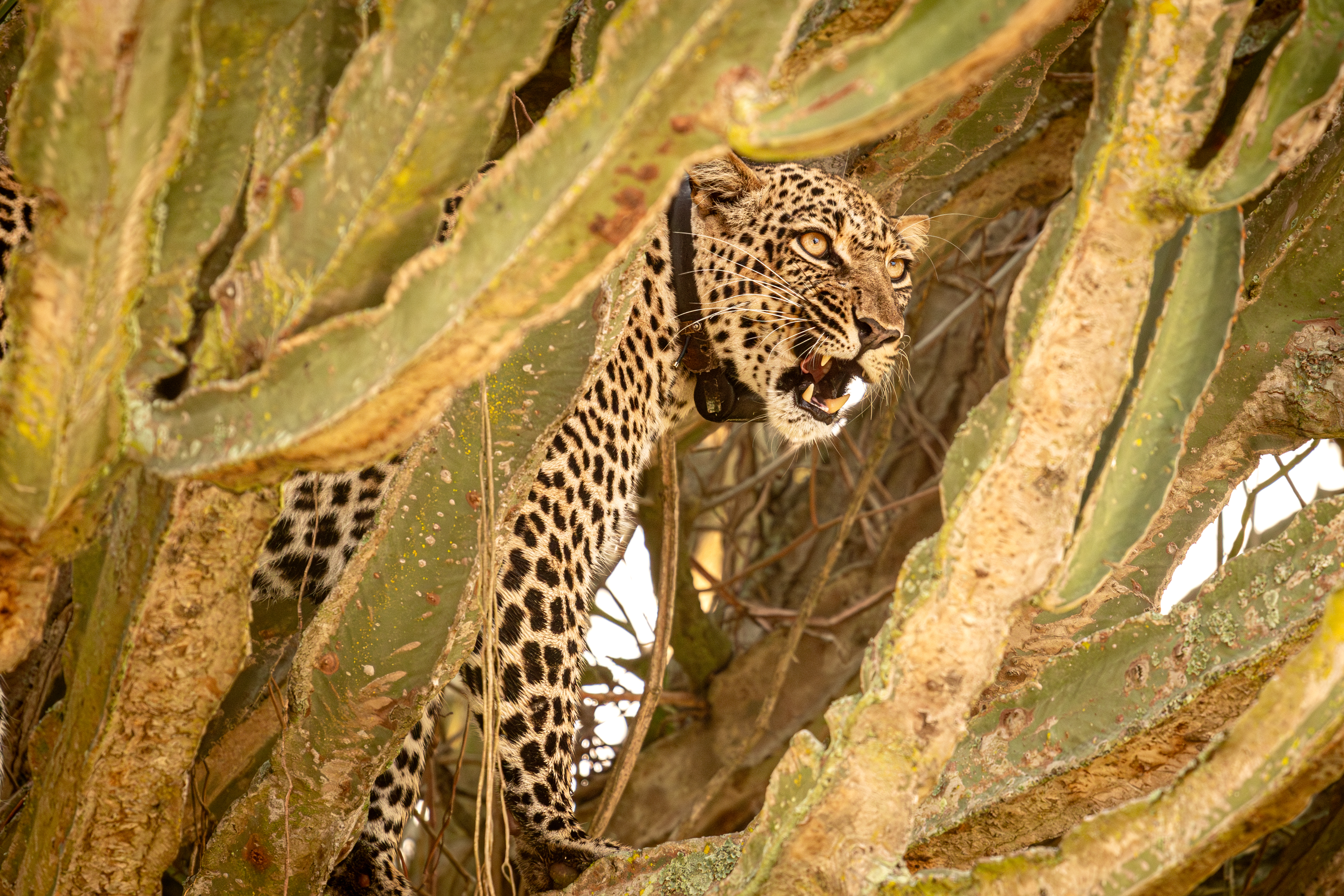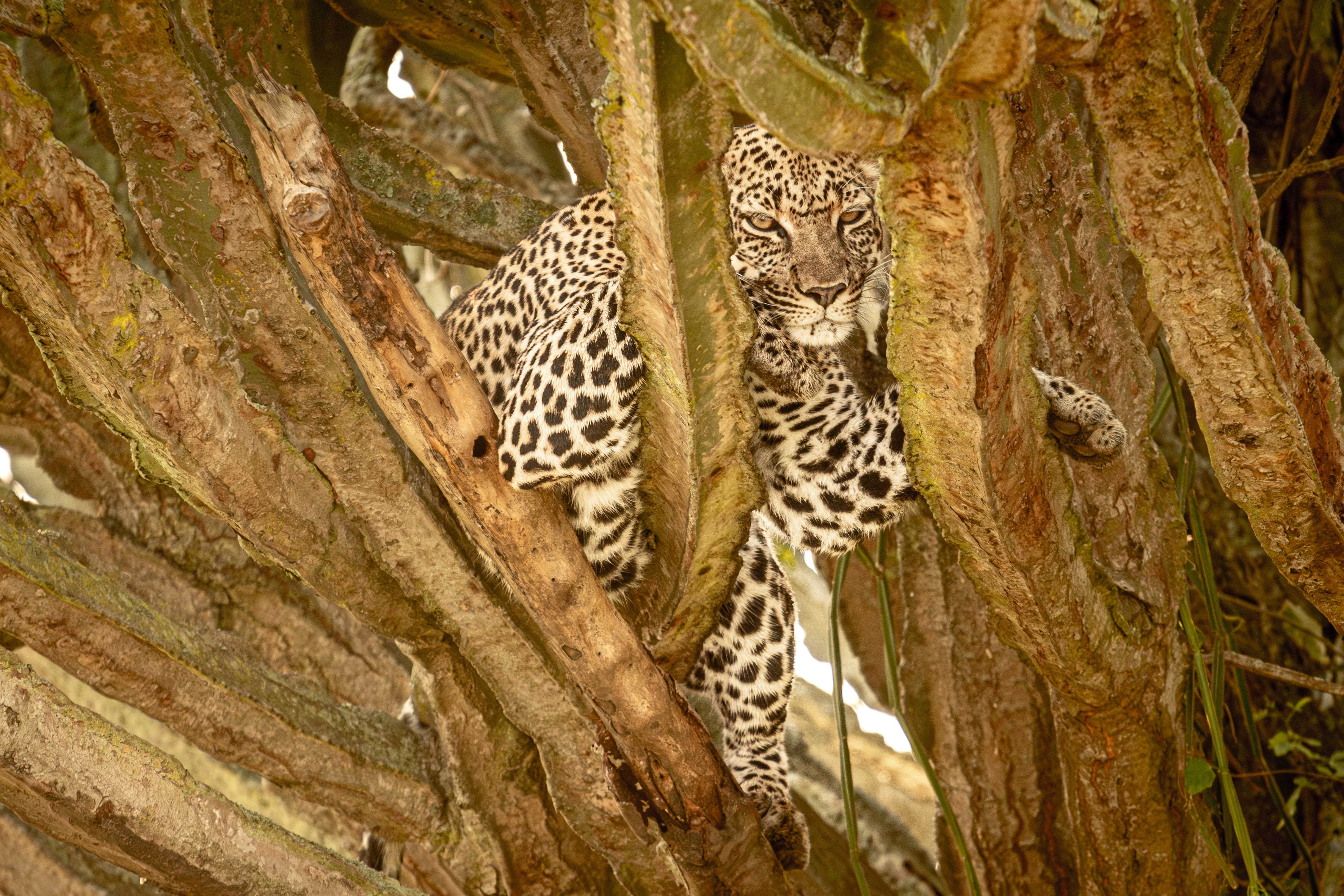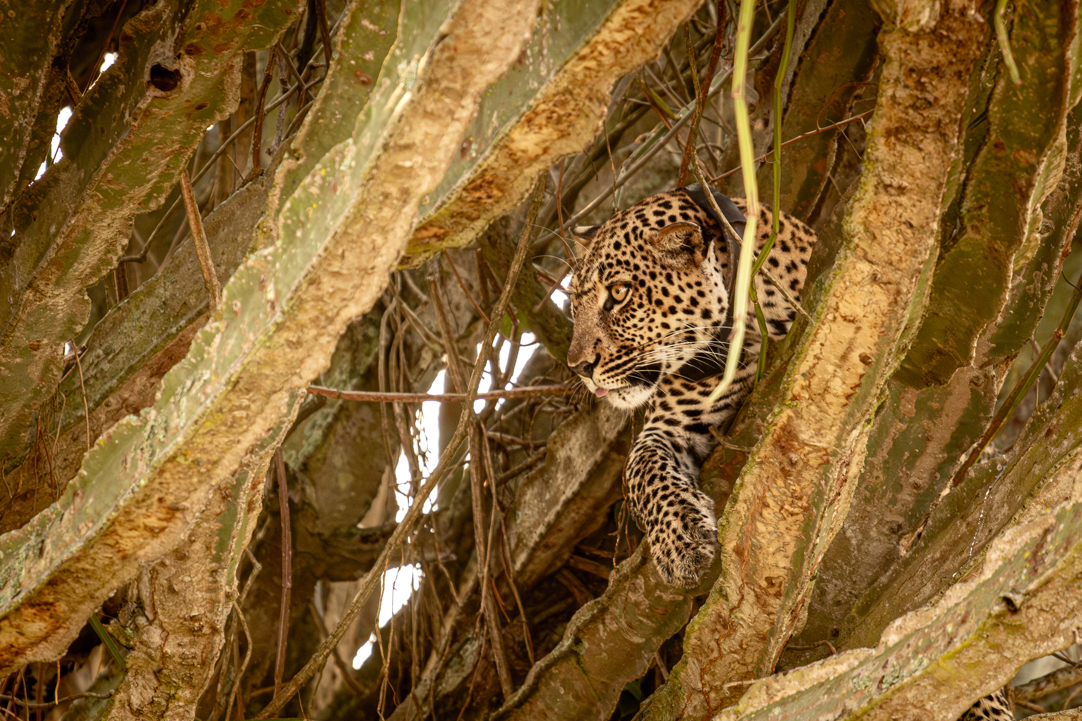 As we continued moving, John suddenly stopped under a tree and said, “Watch the tree!” And there it was—a leopard! It was so close, and I still have no idea how John managed to spot it on the branches. Even he seemed surprised by his own sharp eyes!