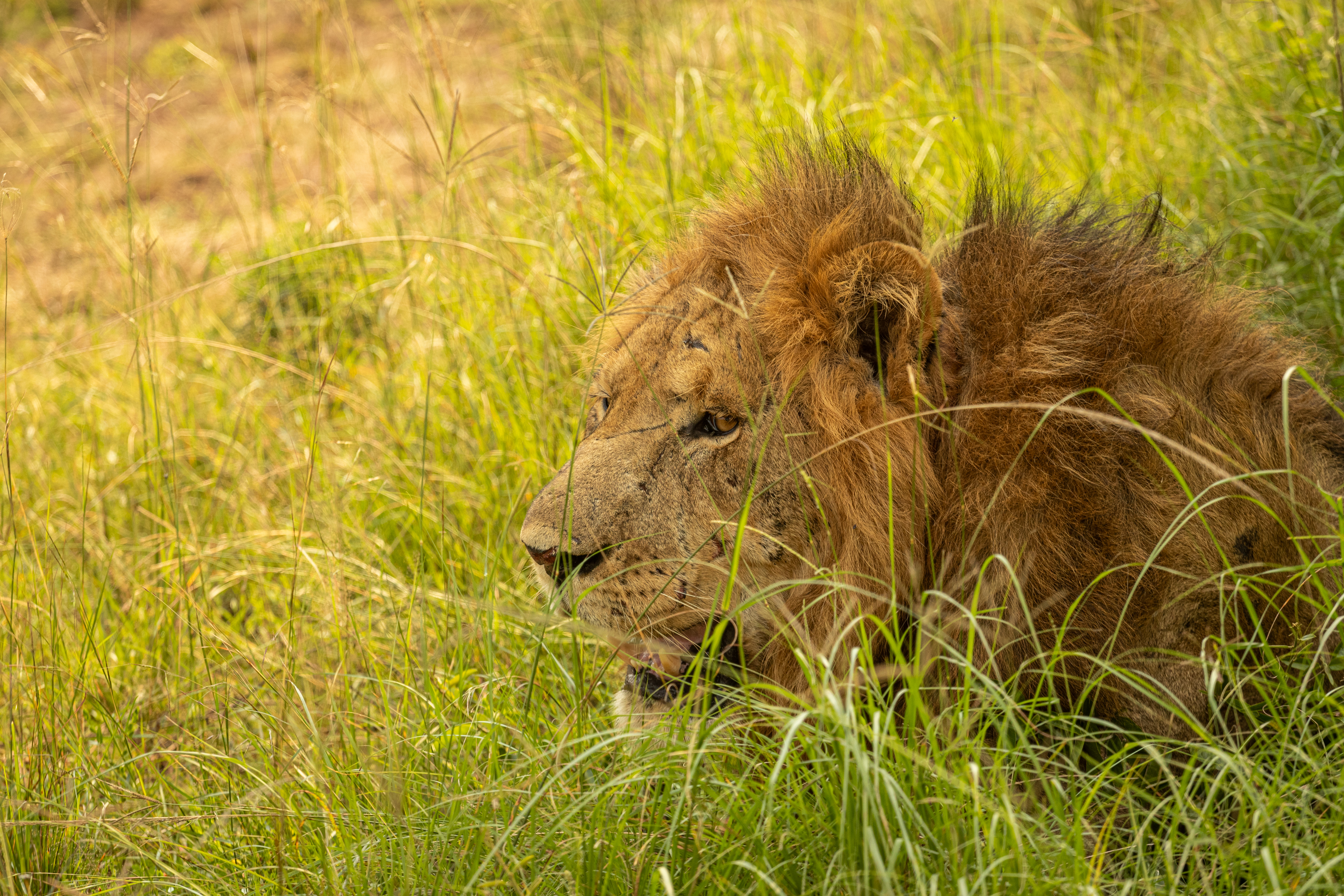 In another part of the park, we found a lot of tourist cars grouped near a large field. Apparently, they were all watching a lion walking far away in the grass.